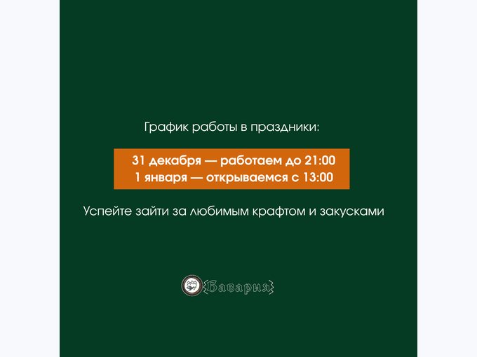 - Работаем ежедневно будни с 12:00 до 01:00 в выходные с 11:00 до 01:30